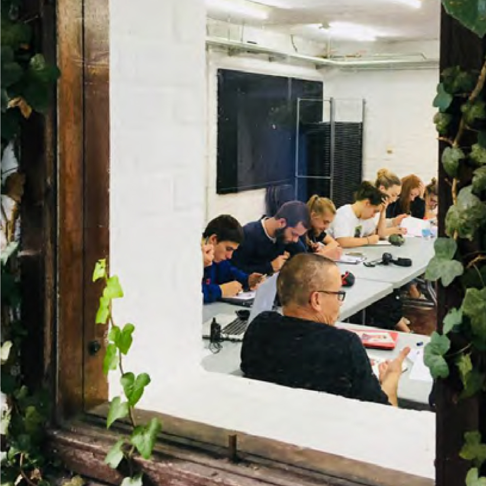 Transformée et adaptée à la pédagogie active de la section qui se veut au plus proche de la réalité du métier, la Ferme offre aujourd’hui trois grands ateliers, une salle d’infographie, une douzaine de bureaux dédiés aux travaux de fin d’études, plusieurs cellules de co-working, un local de réunion, une bibliothèque dédiée à la pub, une coin détente et un espace vert. D’ici peu, le bâtiment s’équipera également d’une cabine d’enregistrement et de montage audiovisuel. Avec les stages d’immersion, les workshops artistiques, les participations aux concours créatifs, les voyages culturels à New York, Berlin, Barcelone, etc., et une équipe enseignante encore très active dans le milieu, tout est réuni pour que le fonctionnement de la section puisse être calqué sur celui d’une agence de publicité contemporaine.